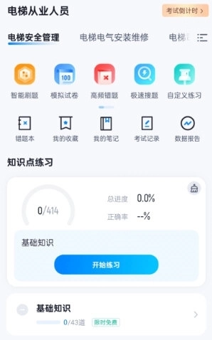 优化题库分类体系,增设电梯安全法规专项练习模块,增强备考的精准性与针对性