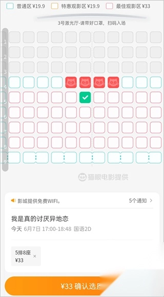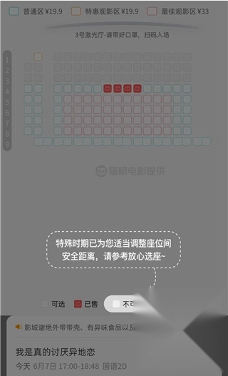 4、当然由于特色时期,电影院将位置调整为了安全距离。