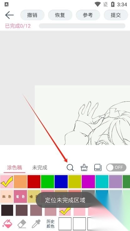 3、点击图中的放大镜图标,就能直接定位到下一个尚未完成的区域。
