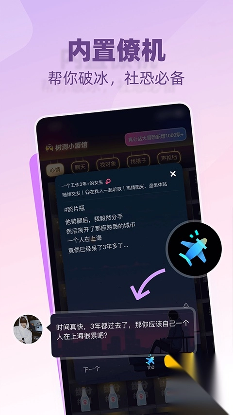 树洞小酒馆安卓最新版是一款专为年轻人打造的全新手机社交交友软件。在这款软件中,用户可以发送信息分享动态,还能借助隐私保护功能安心聊天。软件操作简单,提供大量趣味表情包等实用功能,助力用户获得优质社交体验;同时具备全面的聊天功能,支持群聊互动,凭借简洁的操作和独特的社交体验,成为一款功能强大、内容丰富的社交应用。
