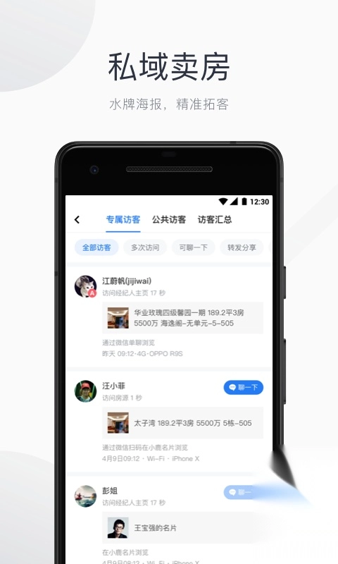 借助对客户需求的自动匹配以及房源信息的快速筛选,既能一键实现面对面的房源分享,还能深入剖析客户的浏览与分享行为,从而精准把握客户的真实心理。
