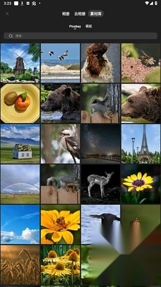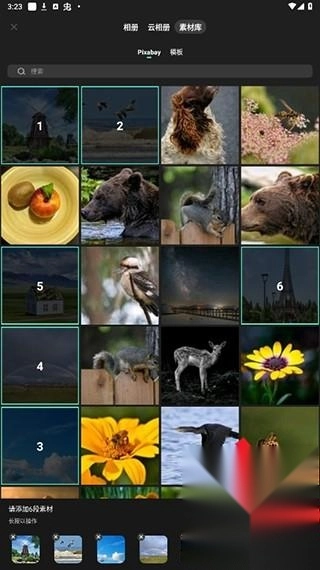 2、选择需要导入的素材,可以选择自己手机相册里的图片或者视频,也可以使用素材库里的。