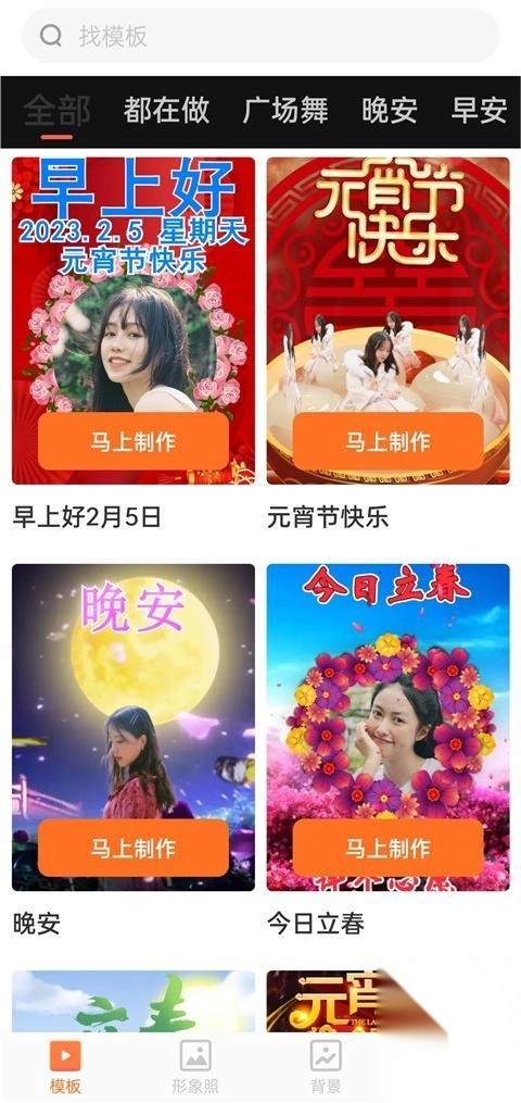 进入软件后,能看到平台提供了多种类型的模板,比如广场舞视频模板、节假日视频模板等。