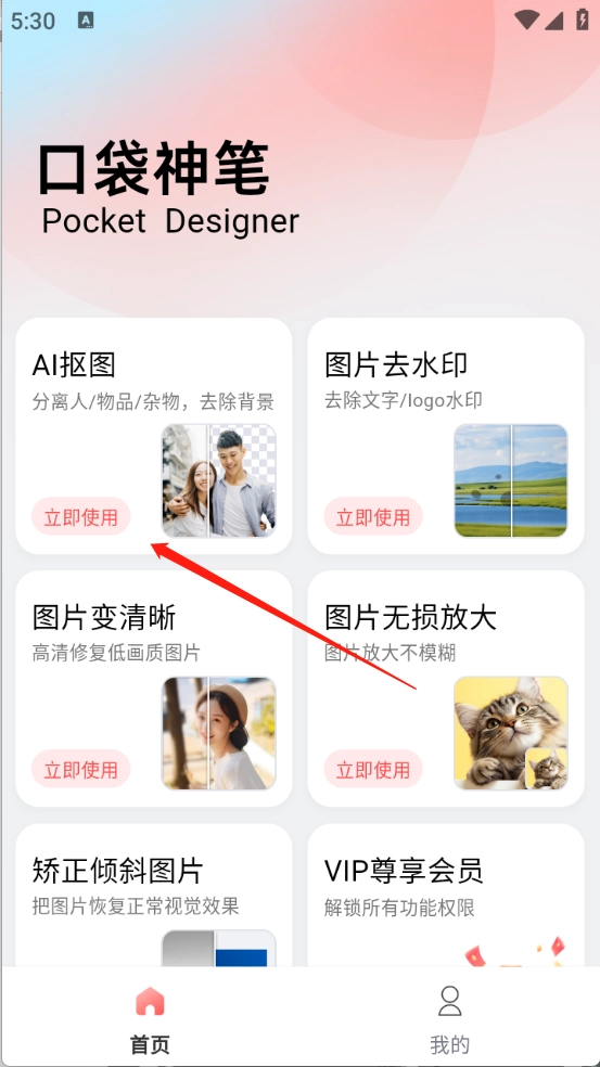 口袋神笔是一款专业的图片处理工具,提供抠图、去水印、图片变清晰等实用功能,所有功能均免费开放,用户只需上传照片即可使用,操作便捷易懂,能够满足各类用户在日常生活与工作场景中的图片处理需求。