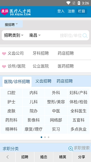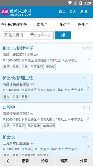 3、平台涵盖公立医院招聘、口腔招聘、医生多点执业、在校生实习求职等栏目,当前已有160万医生与护士在此求职,另有12万义齿技工通过平台寻找工作机会。