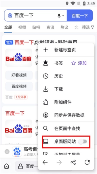 3、然后打开“桌面版网站”;