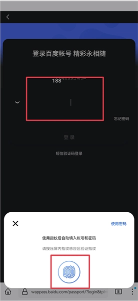 4、最后在百度网站登录账号时,通过指纹验证后系统就会自动添加对应的账户和密码信息了
