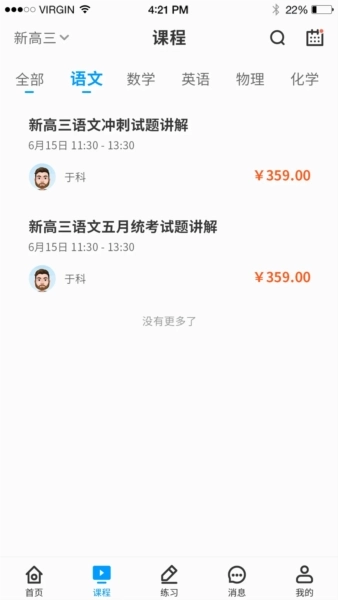 1、这款软件把课程划分成了不同类别,用户能够依据自身需求挑选语文、数学、英语、物理、化学、生物等科目;