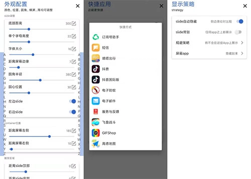 侧滑索引是一款挺实用的侧边工具软件,相信不少朋友常会因为装了太多软件,找不到自己要用的,这款软件就能帮大家解决这个问题——它会在桌面上设置一个侧边索引栏,用户找软件时,只需拖动侧边栏,再按字母排序查找应用就行,操作特别简单,还能根据自己的喜好调整,赶紧来试试吧!