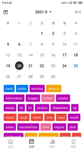 5、遗忘曲线:能切实体现出你在不同阶段对所学单词的遗忘程度;