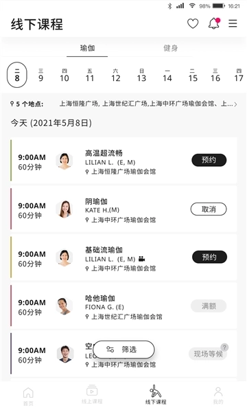 健身班导师方面,您可借助筛选功能来查找心仪的健身班导师。