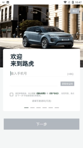 1、首先安装路虎手机应用,完成后即可启动软件并登录账号;