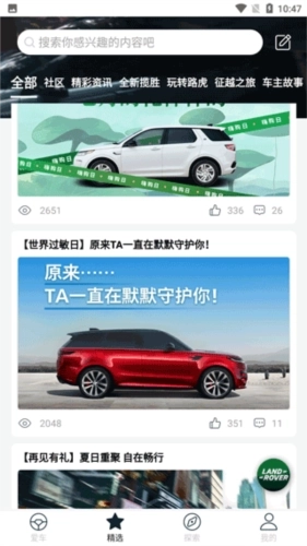 2、登录后会进入精选页面,这里汇集了各类汽车资讯以及一些用车小常识。