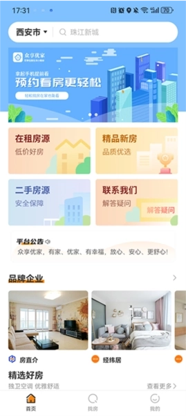 众享优家是西安爱享家信息科技有限公司开发的租房找房服务类手机应用,它整合了各大城市的精品房源,用户借助这款软件,能随时随地找到理想的房源。该应用功能全面,涵盖新房、二手房、公寓、租房等多种类型的房源信息,用户可依据自身需求进行分类筛选,操作简单易上手,有效解决了找房难题。