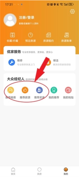 1、用户在个人中心点击推荐租客、房源、买家中的任意一个选项,就能进入对应的推荐界面(小编此次操作选择的是推荐租客)。