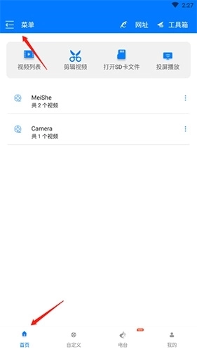 1、打开软件,点击“菜单”选项。