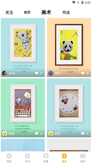 3.专注于儿童艺术兴趣的培育,带来艺术创意的全新体验,涵盖美术与书法领域,让孩子能够随时随地享受快乐的创作过程;