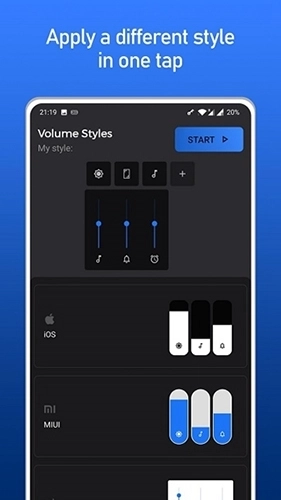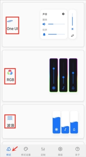 1、安装完成并打开应用后,点击底部的样式设置选项,就能看到各种不同系统风格的音量调节界面