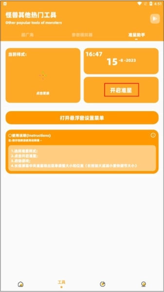 5、在工具栏目,还有准星助手工具可以激活使用,可以有效地帮助大家提供射击的准确度,