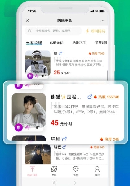 在这里就能直接搜素陪玩人员的信息,帮助你找到感兴趣的陪玩人员
