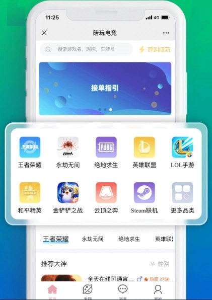 为你推荐许多游戏大神,你就能选择对应的游戏大神获取陪玩服务