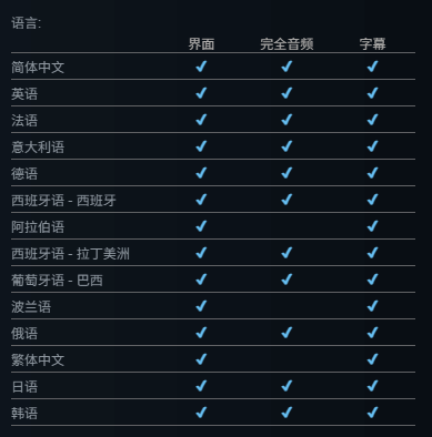 另外,Steam商店显示,这款游戏支持14种语言字幕与11种语言配音,其中就包含简体中文字幕和中文配音!