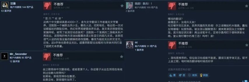 在玩家评价维度,Steam平台上英语与俄语区的评价数量居于前列,且均收获“好评如潮”的口碑。相较之下,简体中文区的好评率仅达57%,玩家的负面反馈主要聚焦于游戏的中文翻译问题——许多玩家指出,部分内容明明可以用直白易懂的口语化表达呈现,却刻意采用晦涩拗口的书面化措辞,导致阅读体验十分吃力。