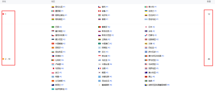 上线8日(9月4日),该作在全球iOS游戏免费榜的排名并没有大规模下滑,反而维持住了其强势表现,处于90个区域市场游戏免费榜TOP50,其中位于中国、美国以及**第2、韩国第5、中国**第4。