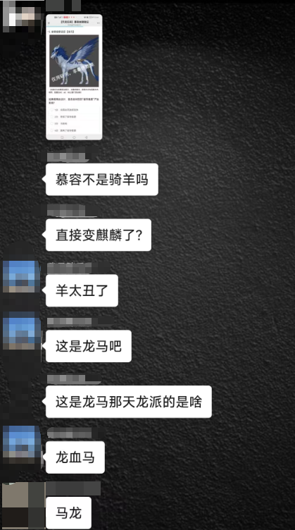 有人直接发问:慕容不是骑羚羊吗?直接变麒麟了?马上就有人反驳:羊太丑了!