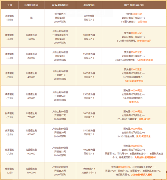 活动期间,各位道友在新服抢注角色与进行预充值,均可提升新服的仙道值。累计仙道值能够激活不同档位的九霄星礼,除此之外,预充值金额达到相应标准,还有机会赢取天竺公主、九阶坐骑星河巨骨刺、银汉九曜鲲、人气八阶坐骑混世大荒、变异炎炎等神宠大奖!