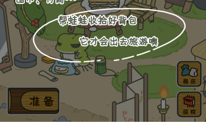 那么到底该如何修改更换我们的称号呢?首先打开并进入《旅行青蛙中国之旅》游戏的主界面,然后在庭院或者小屋内找到我们的青蛙(需要注意的是,这个操作只能在青蛙回家的时候进行)。