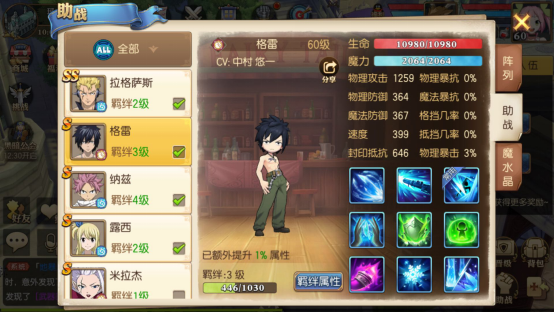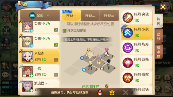 今天小编来给大家介绍一下妖精的尾巴魔导少年的阵容搭配方法。进入妖精的尾巴魔导少年游戏后,随着角色等级的提升,会遇到各类不同的战斗任务,而完成这些任务获取奖励,往往需要搭配不同的阵容才行。