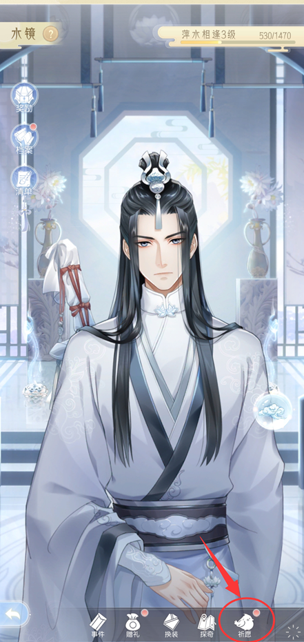 在游戏的游历系统里解锁水镜系统后,就能对心仪的角色使用琉璃了。具体操作是先从游戏主界面进入水镜系统,挑选自己喜欢的角色进入对应的界面。这里要特别说明的是,琉璃并非用来赠送以提升好感度的道具,而是祈愿时需要消耗的物品,每进行一次祈愿都要花费一枚琉璃。