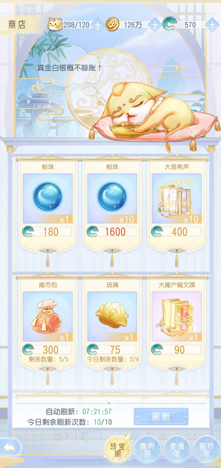琉璃可在商城用灵玉购买,75枚灵玉能换一枚琉璃,每天最多买4枚。另外,完成每日日常任务能得到一枚琉璃,每天凌晨五点刷新时还会更新一枚免费琉璃。