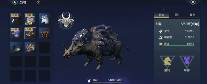 坐骑是从哪里来的呢?在其他大部分游戏里,坐骑除了新手的普通马匹外,基本都是需要通过游戏商店购买的道具。不过,在我们的《妄想山海》中,游戏道具商店里是没有坐骑出售的,所有坐骑都需要在广阔的大荒世界中自行捕捉。不同的坐骑按照稀有程度可分为异兽、珍兽和神兽(神兽需通过神兽图腾及强化获取);按照修炼年限又可分为百年、千年、万年、亿年(亿年坐骑如北冥鱼、鲲、岳龟、蜃龙、冰璃、火璃等,虽未完全证实,但有相关说法)。地图上出现的坐骑,除了极少数特殊的几只外,大多都可以捕捉。捕捉的方法是先将目标坐骑的血量打到较低状态,再使用捕获器进行捕获操作。