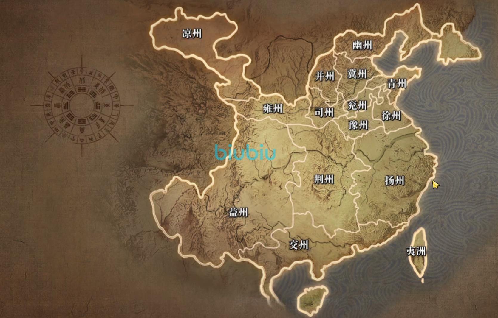 接下来我们进入招募界面,选择武将招募选项。进入武将招募界面后,会看到一幅地图,地图按照三国的地理划分,北方区域对应魏国,西南区域对应蜀国,东南区域对应吴国。值得注意的是,地图上不同的州府地域代表着不同武将的出处,比如蜀国的赵云,除了在蜀国阵地有机会招募到外,在河北地区的冀州和并州也有一定几率抽到他。