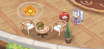 3、接下来要做的是寻找橙花,在地图里能找到两张椅子,椅子旁边有一张桌子,桌上放着一盆花,这就是你要找的橙花了。