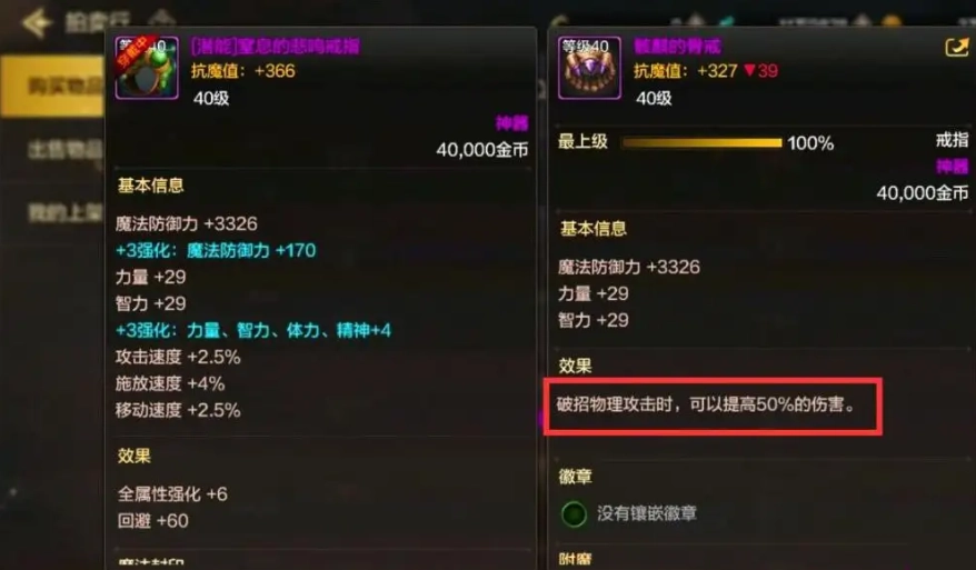 骨戒的全称是麒麟的骨戒,按照以前的说法,这是一件远古粉装备。和后期的悲鸣戒指相比,它虽然没有三速加成,但“破招物理攻击伤害增加50%”的效果却异常强悍。对于刷图而言,速度的优先级其实没那么高,与其追求花里胡哨的效果,不如实打实的高伤害数字来得爽快。手游里敌人迟缓的攻击动作和端游一模一样,因此很容易触发破招物理攻击的判定。这里的“物理攻击”涵盖范围很广,不仅普通攻击能触发,物理技能也同样适用。对于那些本身爆发伤害就较高的职业来说,有了骨戒之后,刷一张图可能只需要放一两个技能就能把敌人清空。