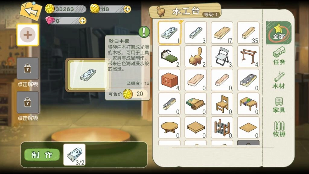关于目标道具的收集与制作,具体如下: 首先是木柄相关,玩家只需收集树木的枝干,然后直接利用庭院里的木工台就能制作出木柄。 至于石头道具,获取之后还得进行打磨处理,这一步玩家可以通过熔炉来完成。