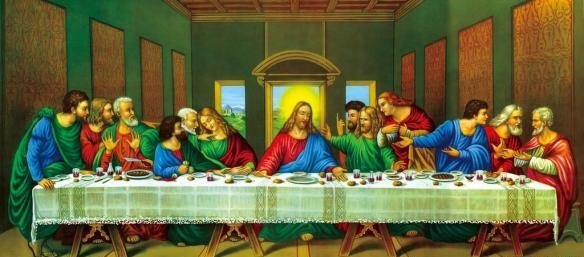 逾越节当天,耶稣与十二门徒围坐一处,享用他们的最后一餐。他带着忧愁的神情对门徒们说:“我实在告诉你们,你们中间有一个人将要出卖我!”门徒们听到这话,有的震惊,有的愤怒,有的激动,有的紧张。