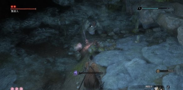 具体位置在金刚山的修炼道地图上,这里有个支线任务——一位和尚会让你去取纯白色风车。在这个任务地点附近,有一条忍者通道,你需要操控角色贴近通道,角色就会沿着墙壁翻过去,之后就能看到一个漆黑的洞穴。洞穴里有个体型庞大的无头人,实力极为强悍,普通平砍攻击只能对他造成一丝微弱的伤害。