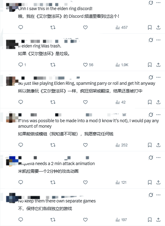 部分玩家在评论区乐不可支:“谢天谢地,《艾尔登法环》是款动作游戏。”“要是《艾尔登法环》是AI搞出来的糟粕,估计就和这视频里的样子差不多了。”“这手忙脚乱招架的惨状我可太熟悉了。”还有些玩家则盼着光与影能针对这个出个模组,把游戏好好改造一番。