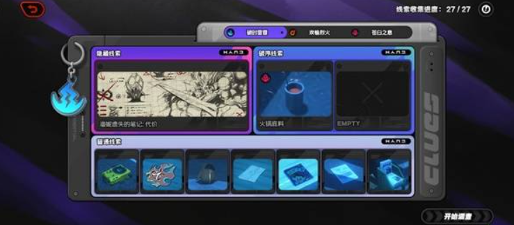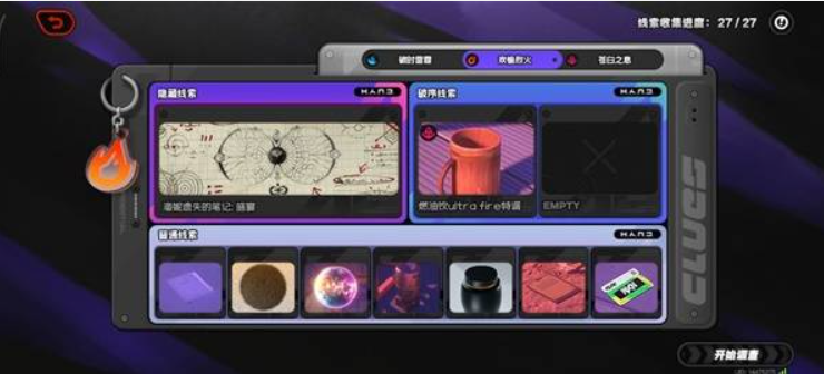 烈火区域藏有线索,需要先找到唱片机。在苍白处拿到《苦情慢歌1000首》后,再次进入烈火区域与唱片机互动就能获取线索。互动完成后,电梯上方的音箱还会把背景音乐切换成柏妮思的绝望吧台。