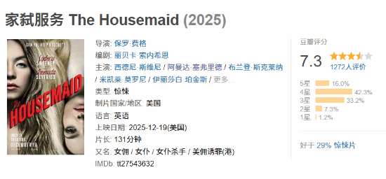 目前这部影片在豆瓣平台上的评分为7.3分。