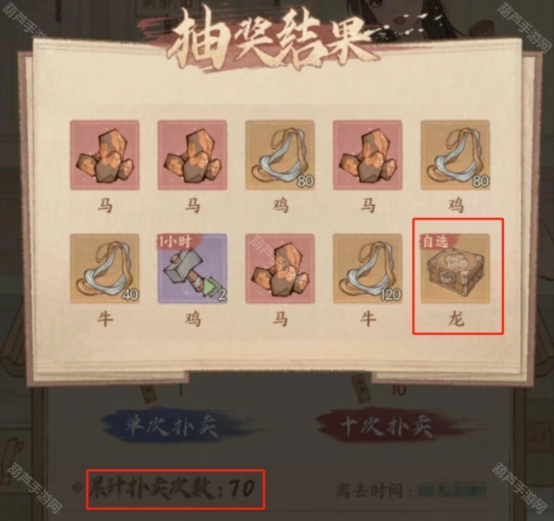 装备材料自选礼是第70抽时,会出一次。