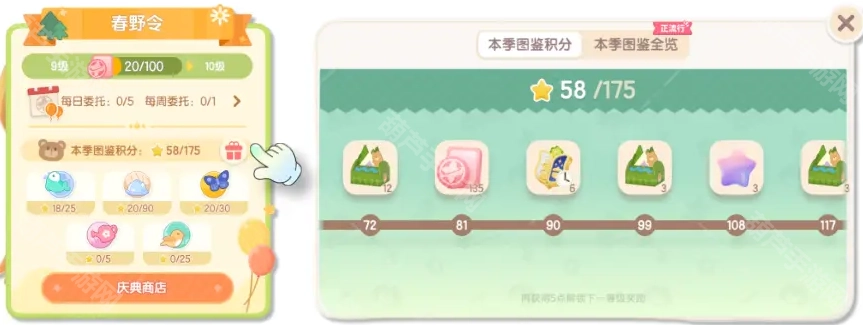 3、手册升级奖励领取(图鉴积分、每周挑战、居民委托)