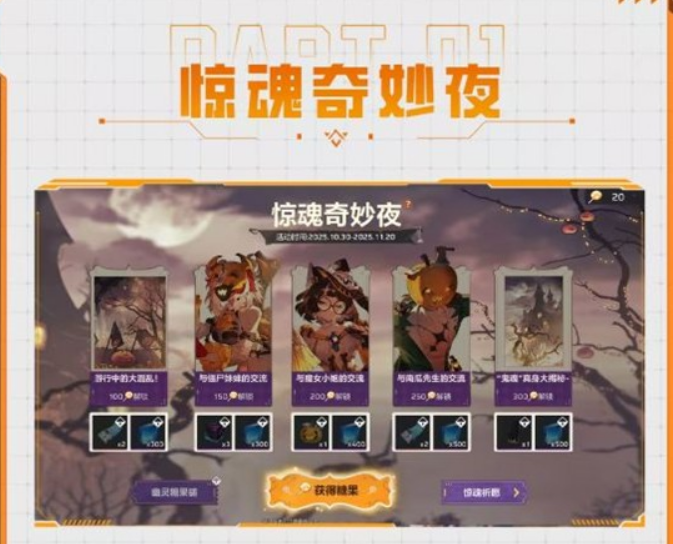 引航者可消耗「南瓜波板糖」解锁活动故事。阅读这些精彩故事后,你将收获「记忆序列」、勋章「南瓜头」、封装「惊魂之夜」、「弦能晶石」等丰厚奖励。这些奖励既能提升你的游戏体验,又能助你在万圣节狂欢中崭露头角。